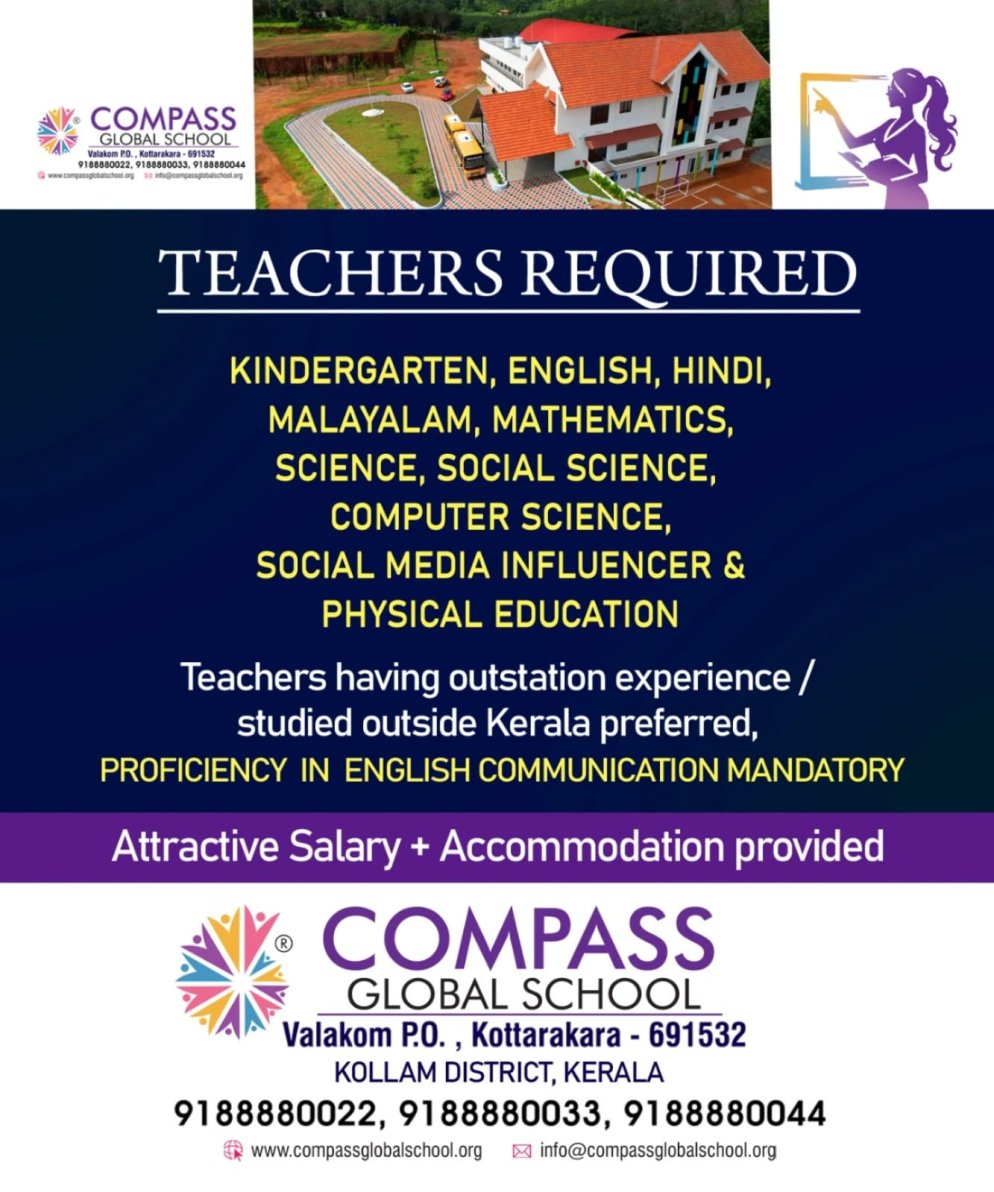 WE ARE HIRING PASSIONATE TEACHERS HAVING OUTSTATION EXPERIENCE / STUDIED OUTSIDE KERALA PREFERRED. PROFICIENCY IN ENGLISH COMMUNICATION IS MANDATORY.